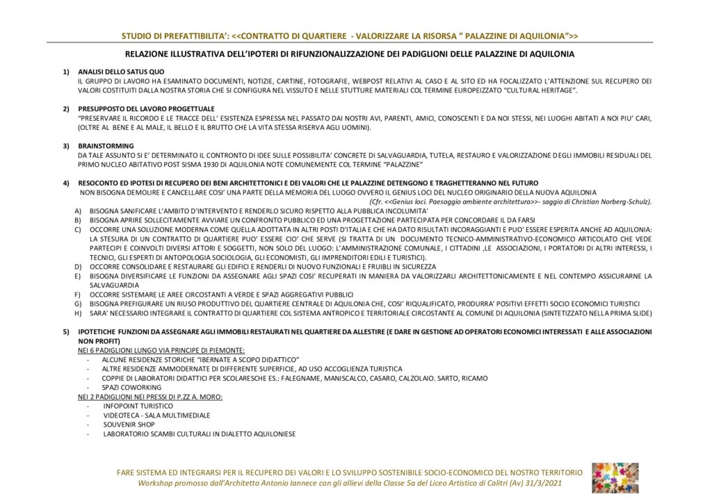 Studio di Prefattibilità : Contratto di Quartiere – Valorizzare la Risorsa “Palazzine di Aquilonia”